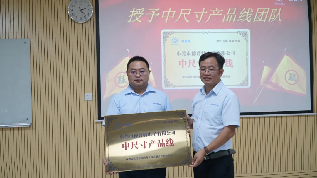 两位领导的讲话为2024上半年的总结汇报画上了句号。在下半年的战斗中,为增强团队凝聚力与集体荣誉感,公司领导班子将特别定制的专属牌匾交到各产品线负责人手上。