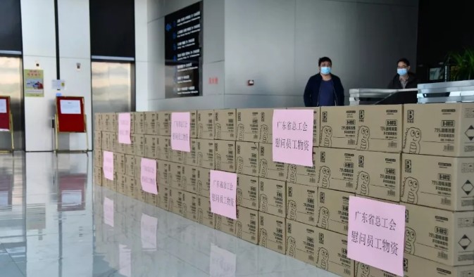 省总工会慰问团为德普特电子一线员工送来防疫物资