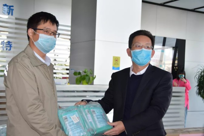 陈伟东强调,企业要严格按照政府规定落实“四个到位”和“八个一”防控要求,有序地复产复工。接着,慰问团一行向已经复工的员工表示亲切的慰问,为他们送去1000个一次性医用口罩和100箱酒精消毒喷剂等防疫物资,把党和政府的亲切关怀送到复工员工身边。